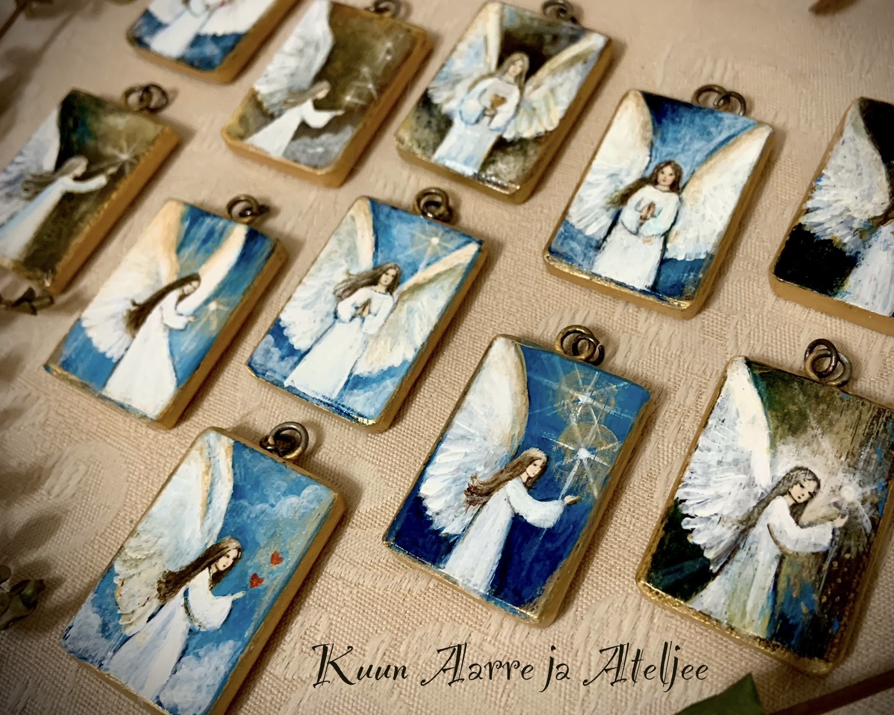 Ateljeesta löydät Marita Katariinan käsinmaalatut uniikit taidekorut, kuten Suojelusenkelit ja Valonantajat, maalaukset sekä muita taidetuotteita. Tarjolla on myös perinteisin menetelmin eli käsin tehtyä kuvitustyötä.