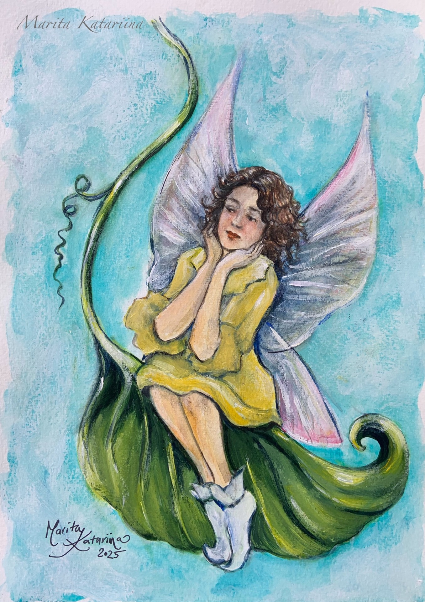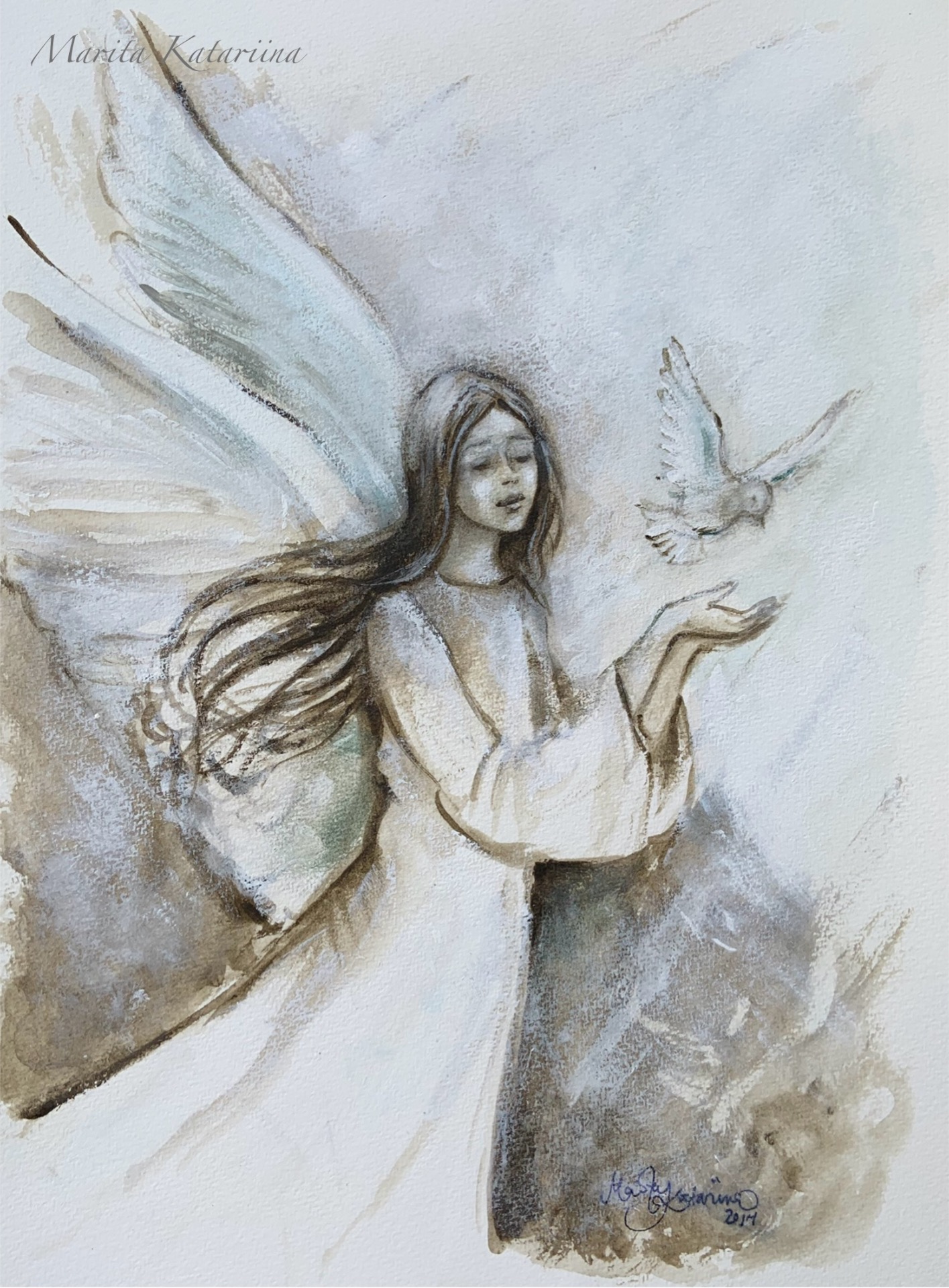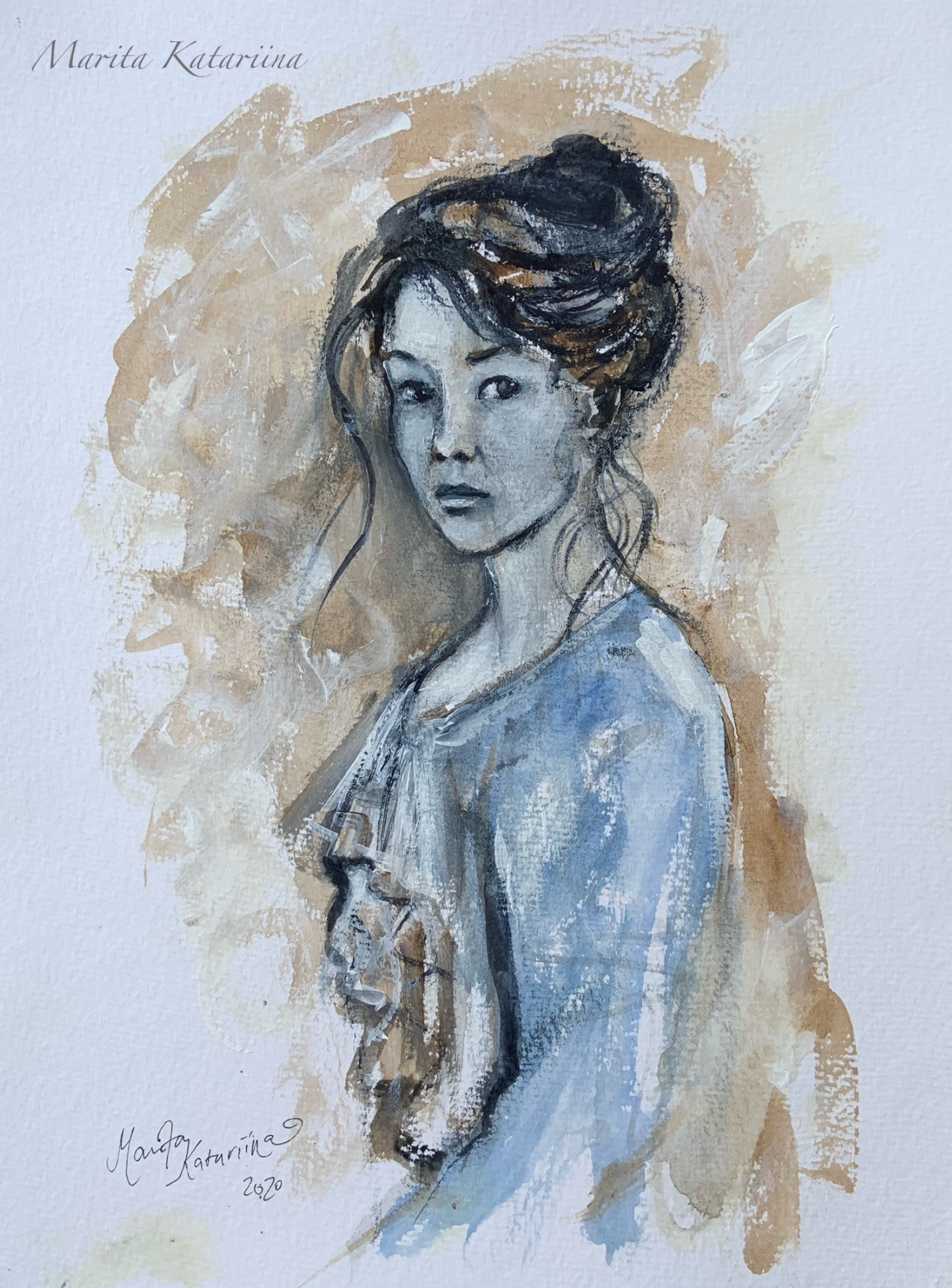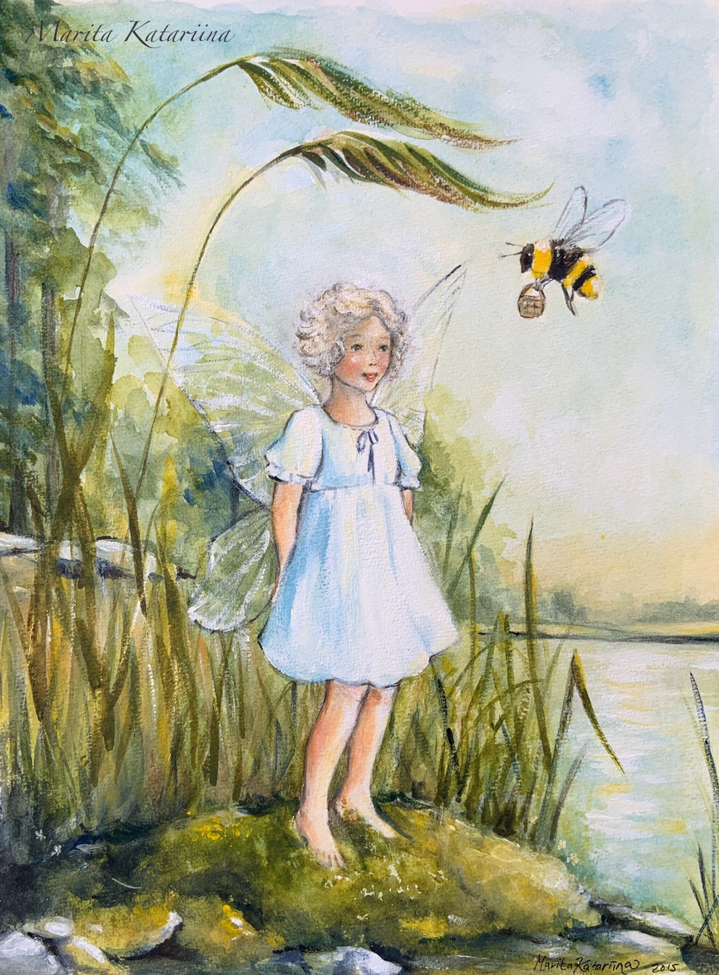 Yleisin koko on A4 eli 21 x 29,7 cm, osa on vähän suurempia. Teos on tehty laadukkaalle akvarellipaperille korkealaatuisin akvarelli- ja akryylivärein. Myynnissä on sekä vanhempia että uusimpia teoksiani. Klikkaa kuvaa nähdäksesi teoksen mitat ja kuva suurempana.