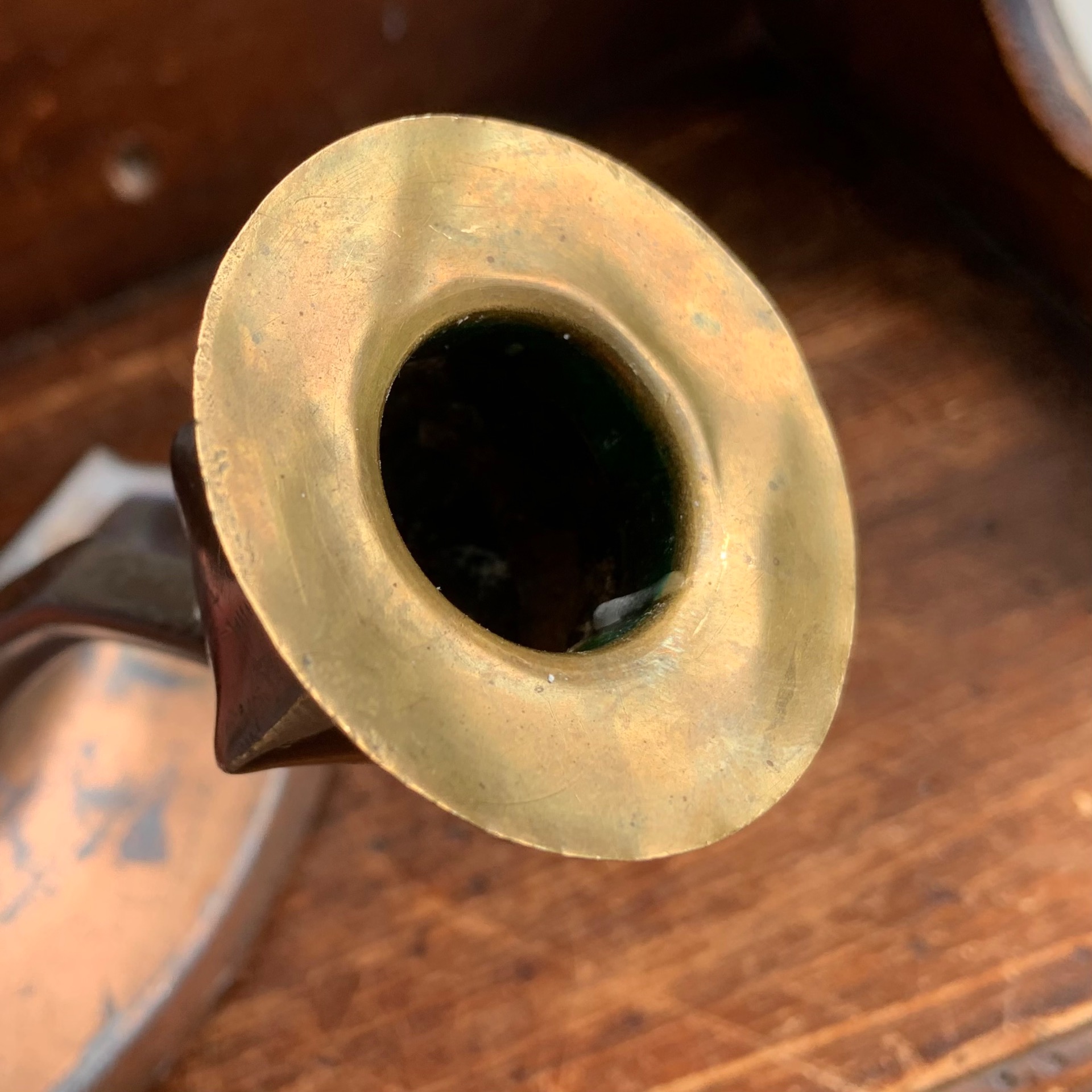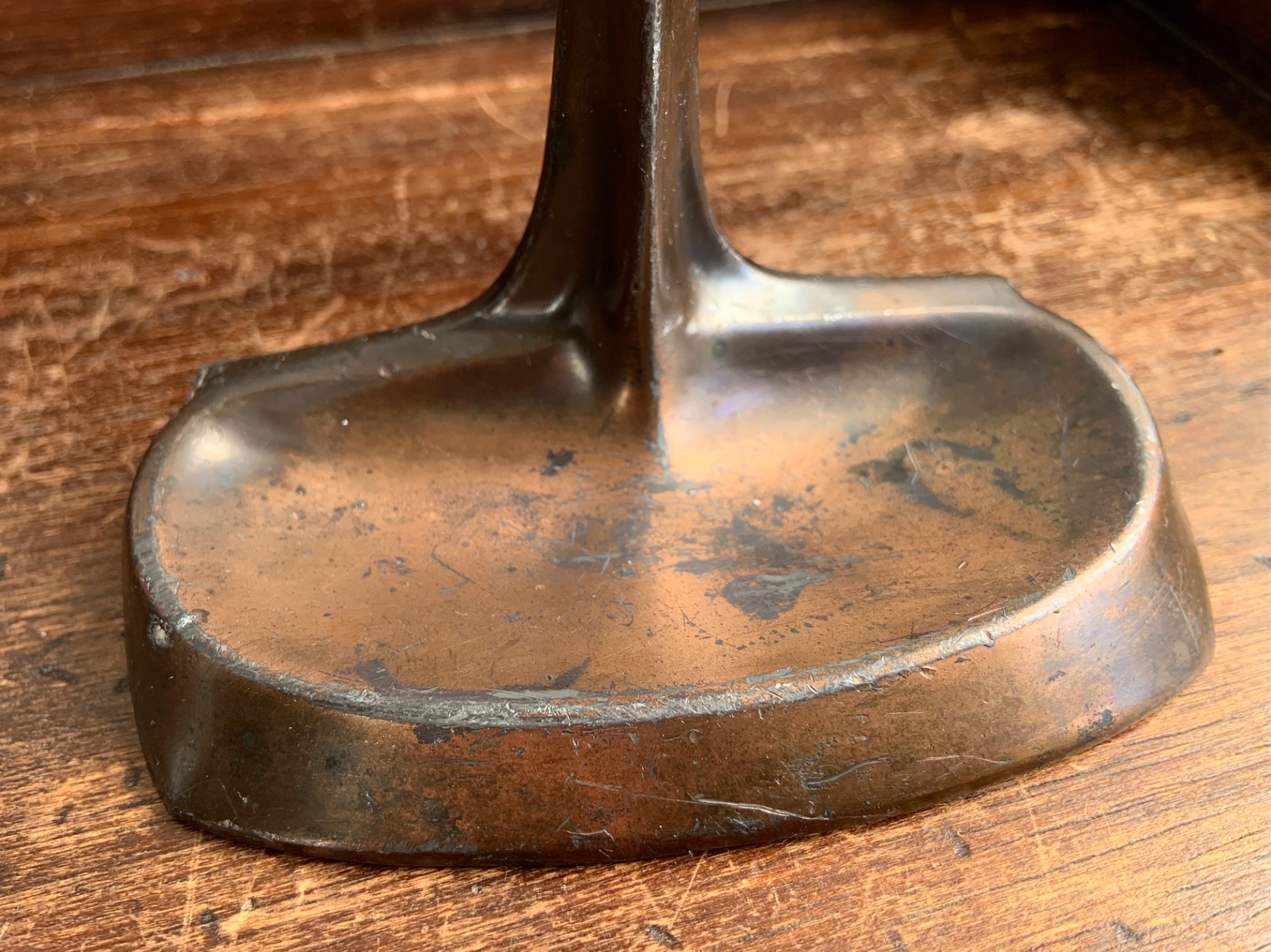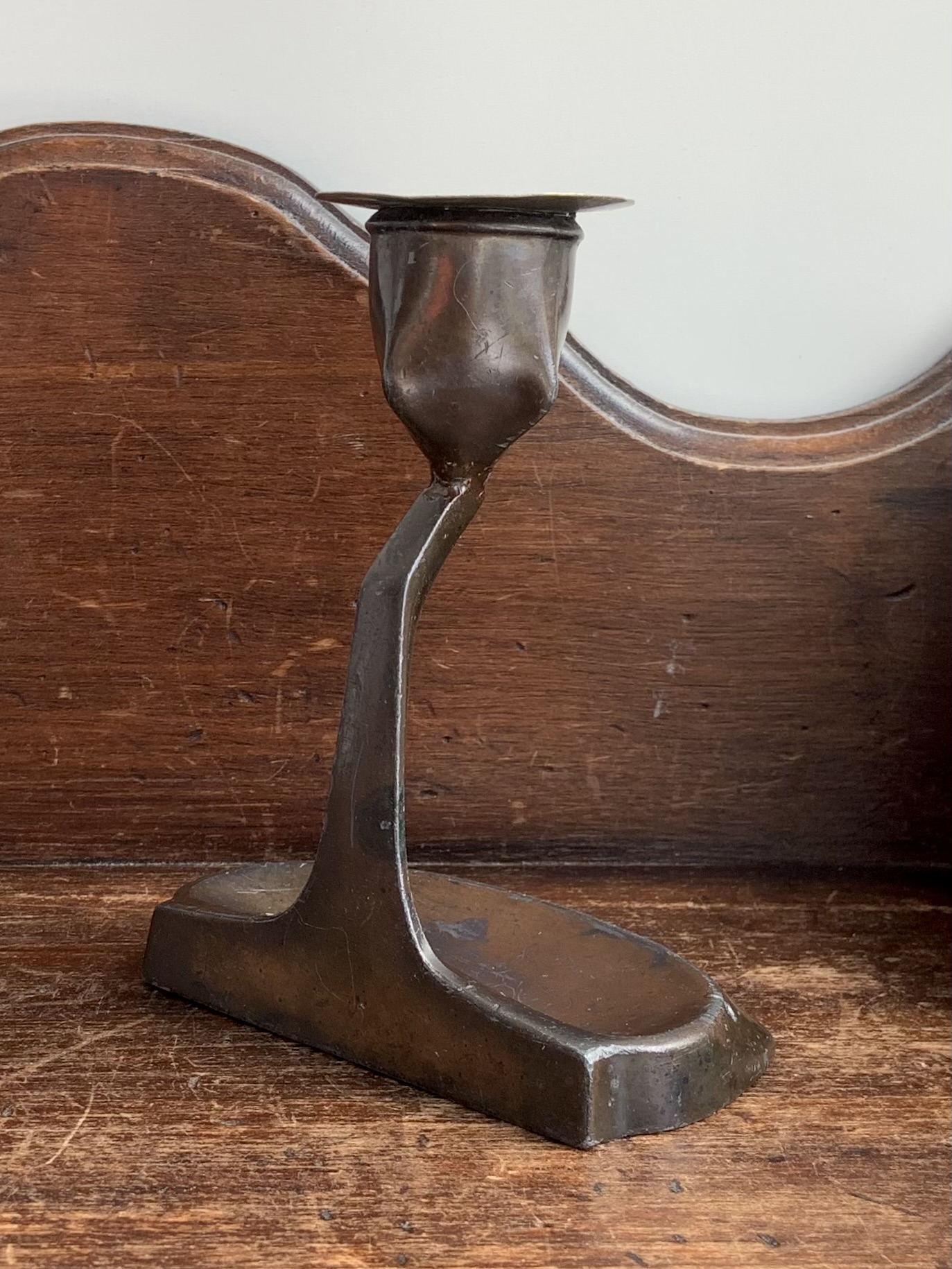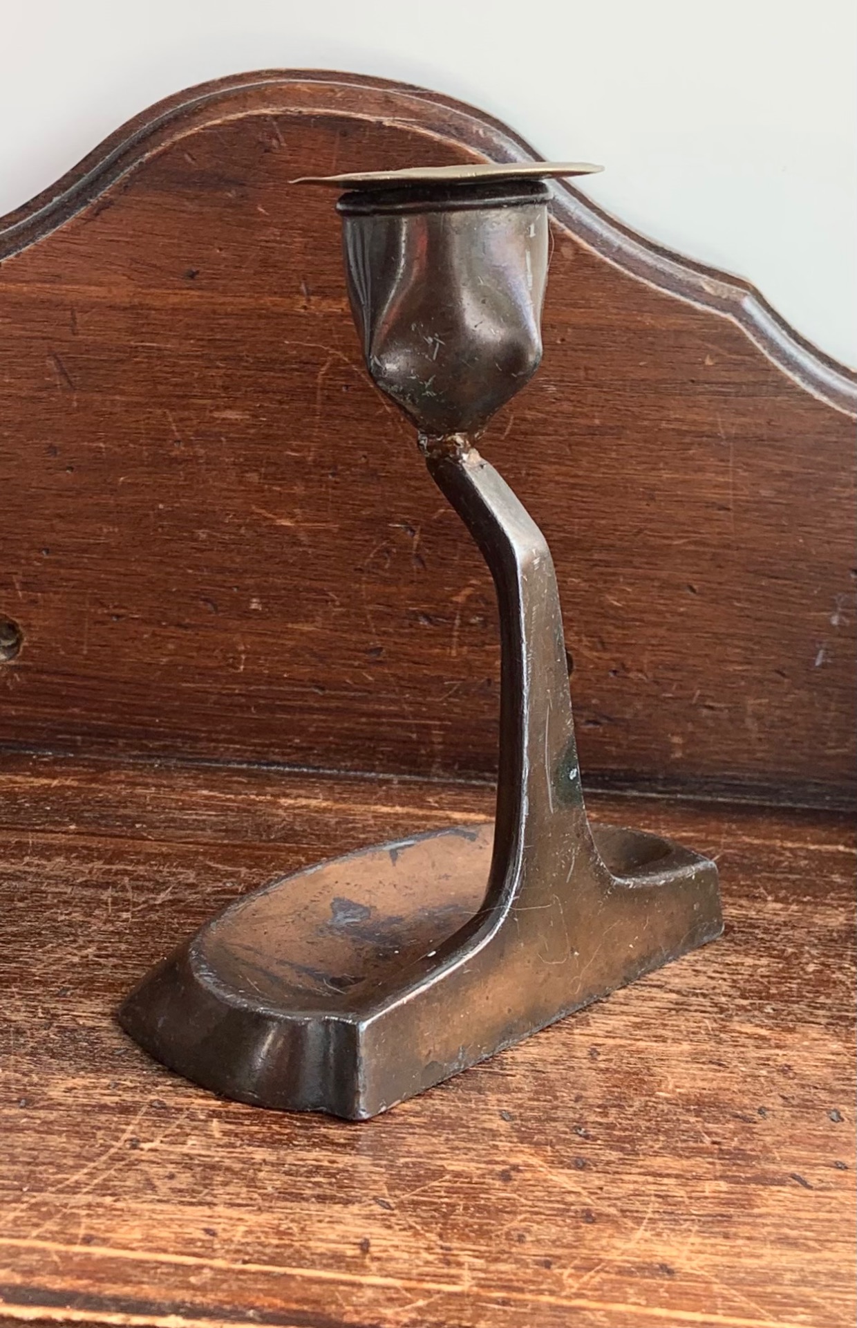 Erikoinen kynttilänjalka, jossa mahdollisesti tuhkakuppi alaosassa.