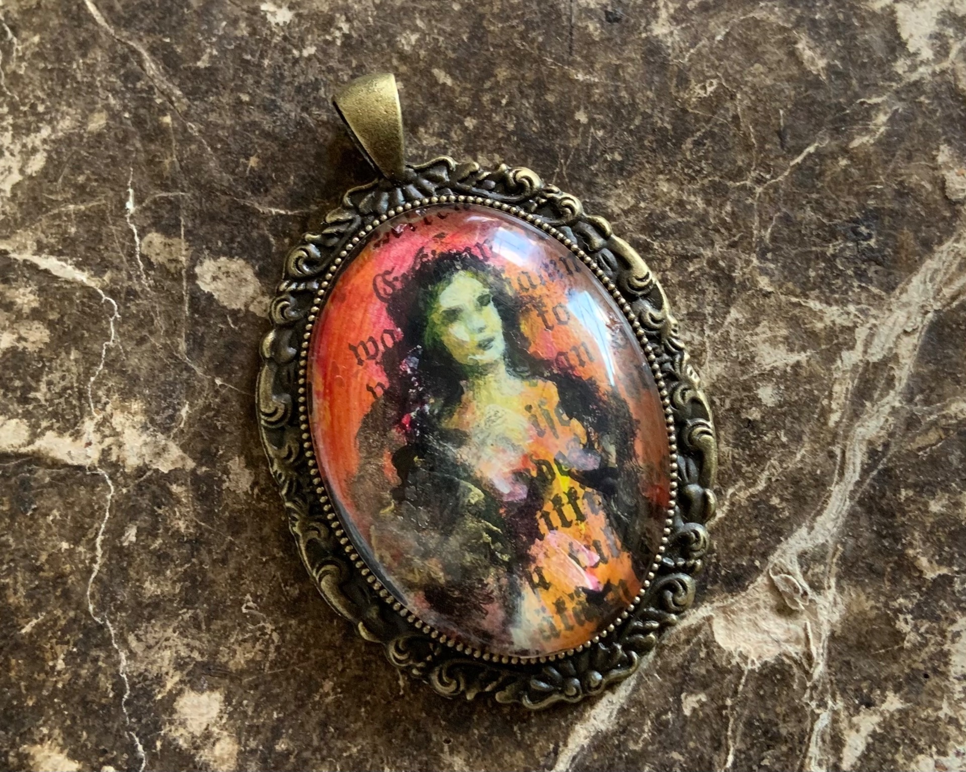 Maalaus on eloisa ja pinta jossain kohdin kiiltelee johtuen maateriaalin, maalipinnan tai paperin pinnan epätasaisuudesta. Hyvin pieni häivähdys kultaväriä näkyy taustassa hyvässä päivänvalossa.