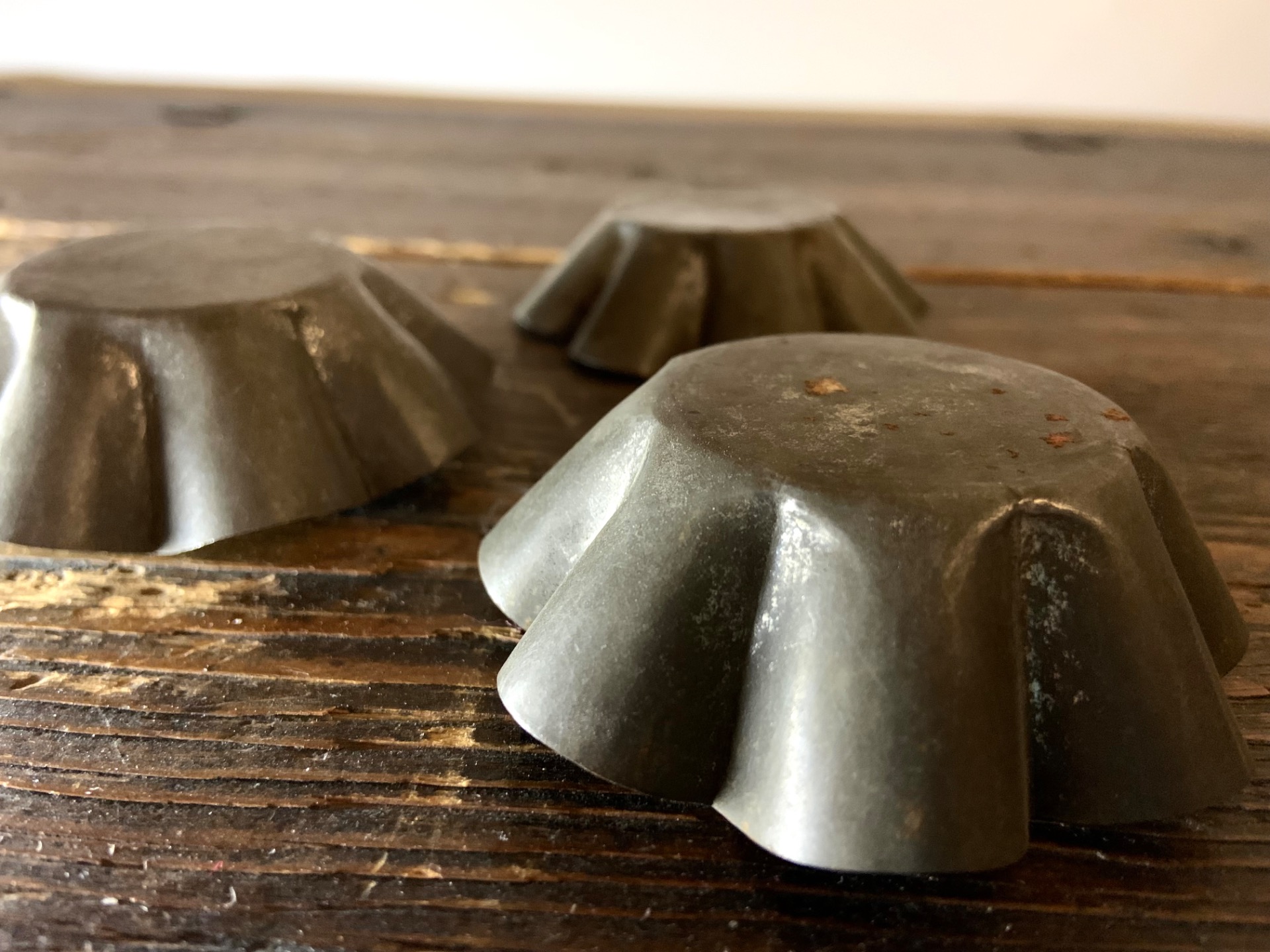 Hakusanoja: vanha leivosvuoka pikkuleipämuotti kakkuvuoka pikkuvuoka pieni metallinen muotti keittiöantiikki keittiöantiikkia vanhoja esineitä keittiöön
