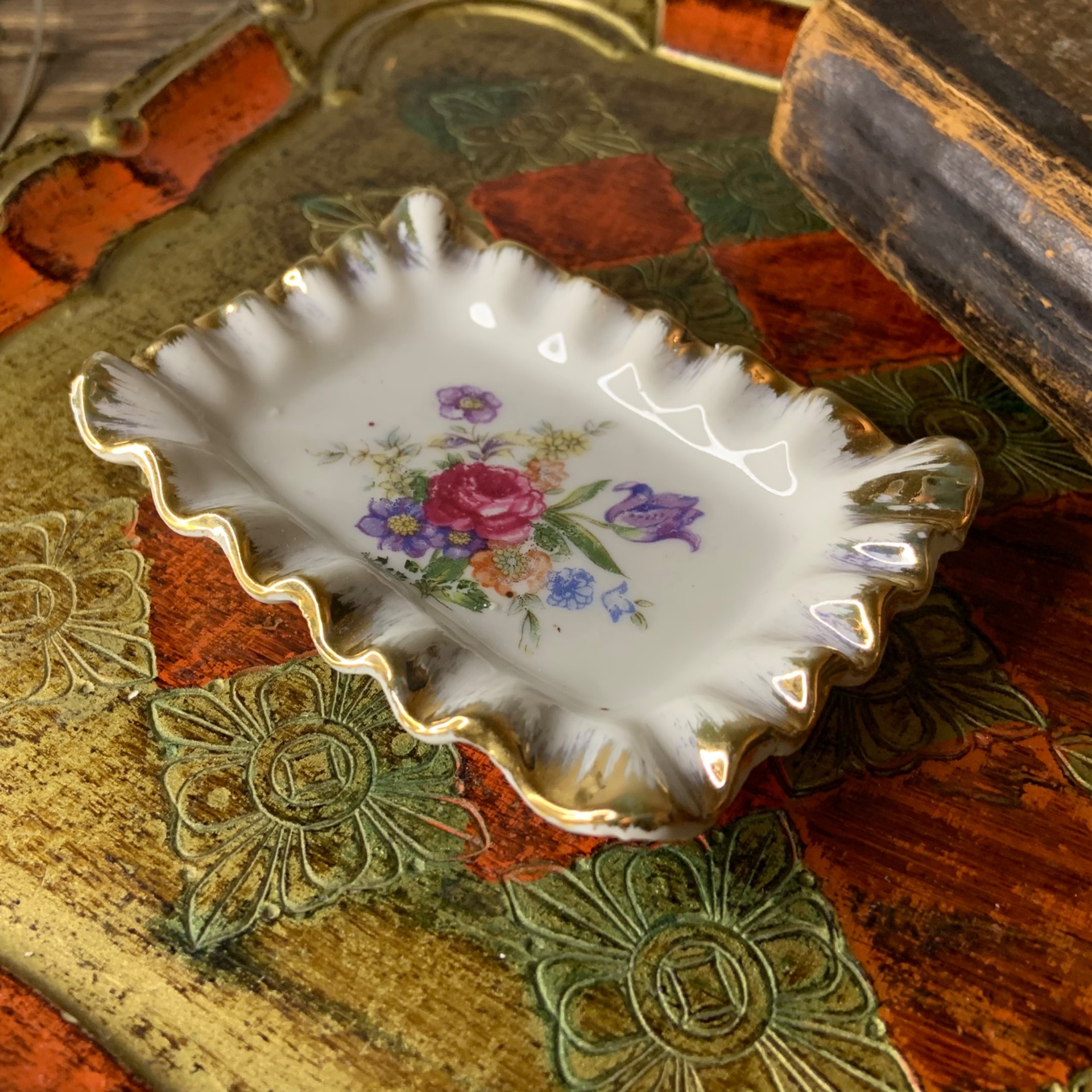 10 x 7,5 cm, kork. n.1,8 cm. Kultaus reunoissa.