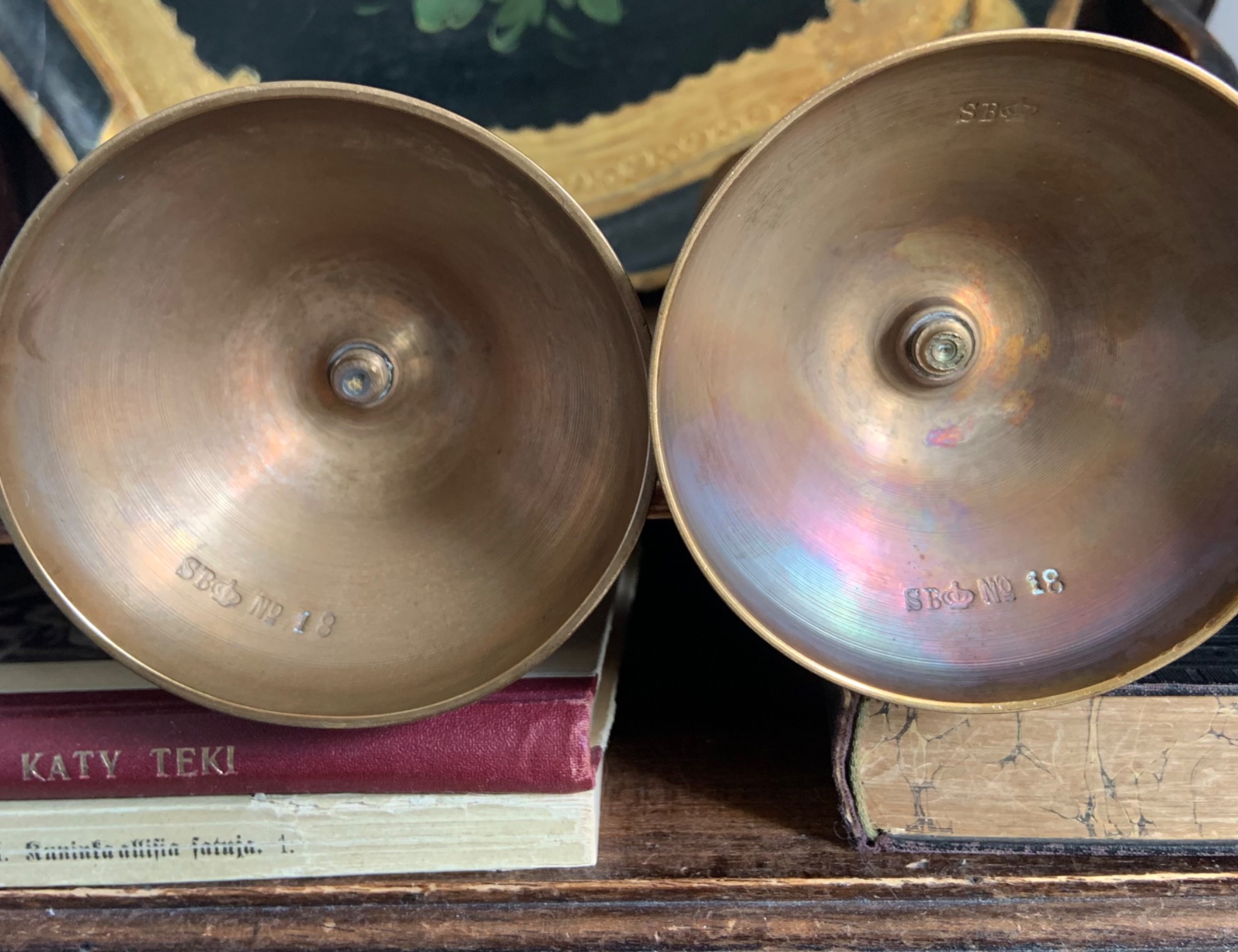 Ruotsalaiset antiikkiset kynttilänjalat. Skultunan vanhat leimat. Hyvässä kunnossa ikäisikseen.