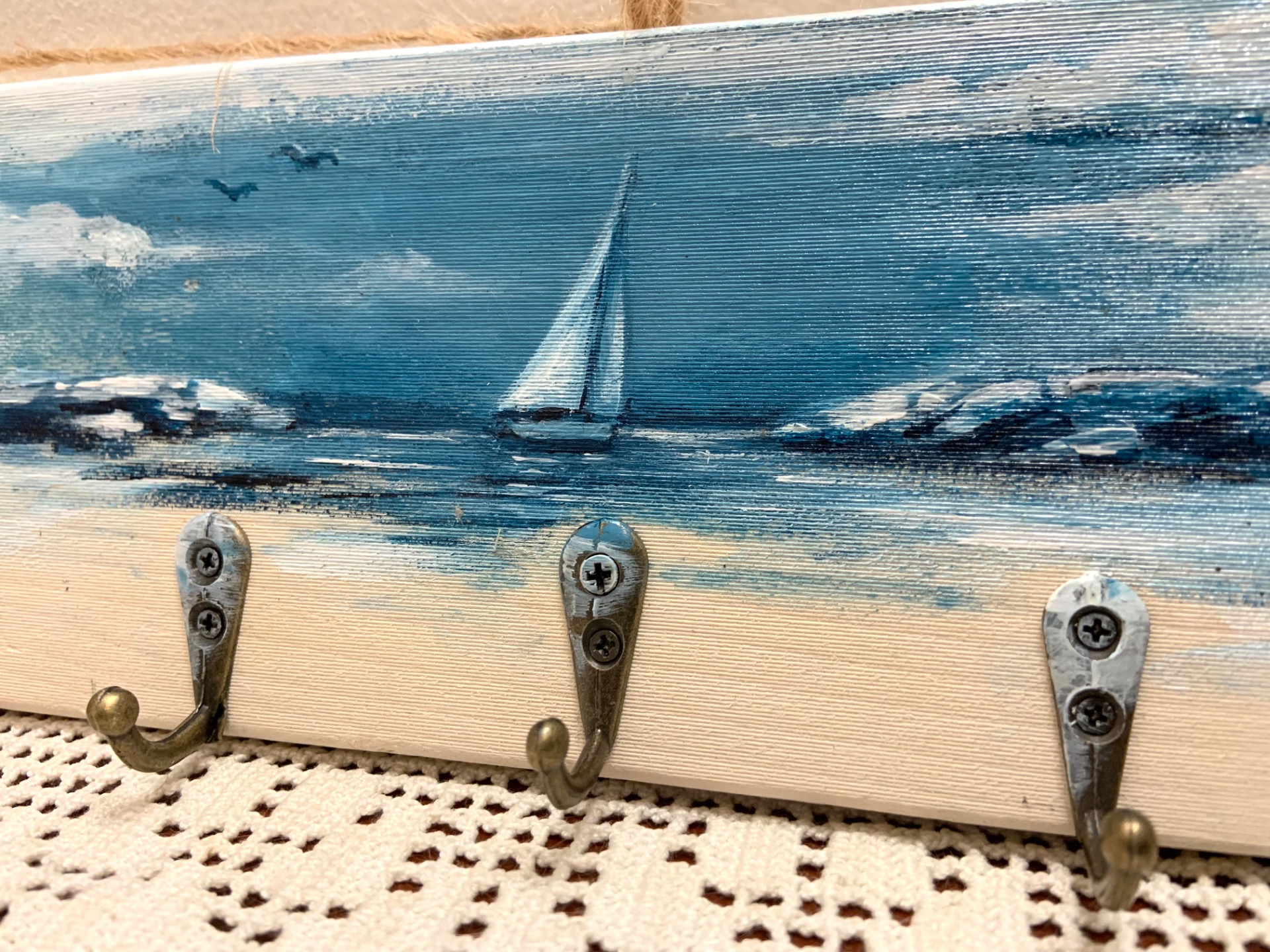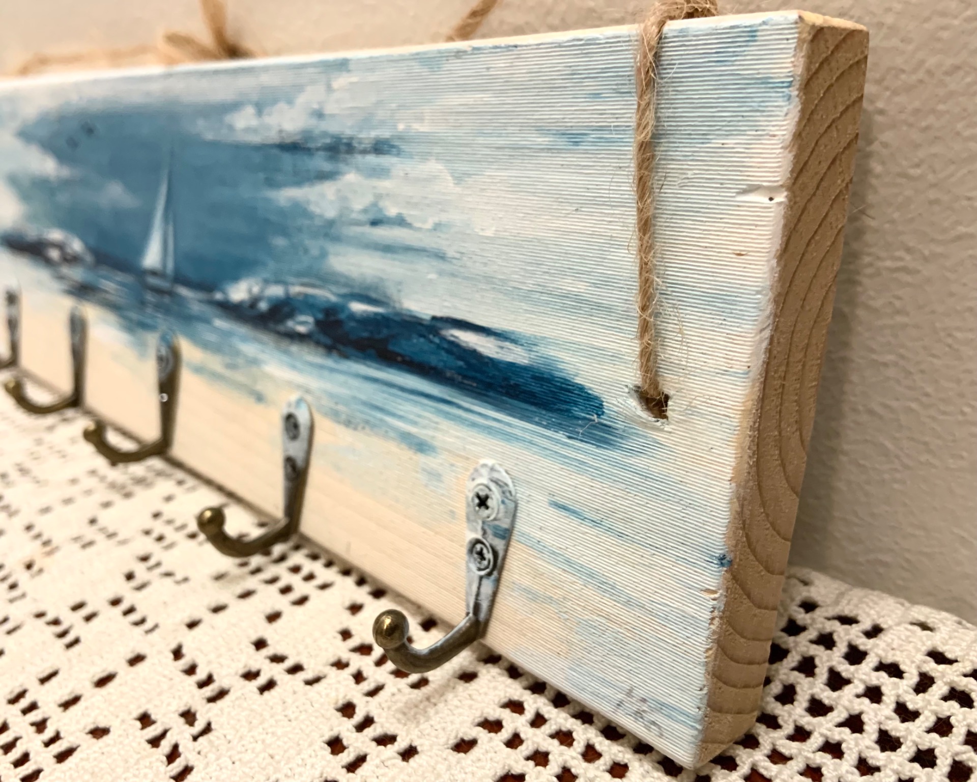 Koko 30 x 9,5, laudan paksuus 2 cm. Viisi koukkua.
