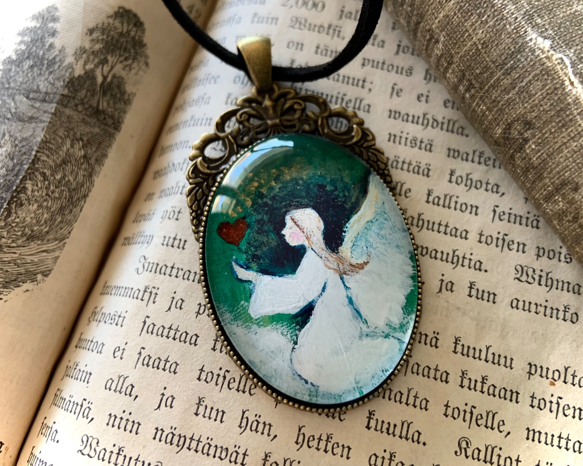 Tämä pieni enkeli muistuttaa meitä luonnon kunnioituksen tärkeydestä. Hän kannattelee voimakkaan punaista sydäntä, johon on pakattu paljon viisautta, hyvyyttä ja rohkeutta.