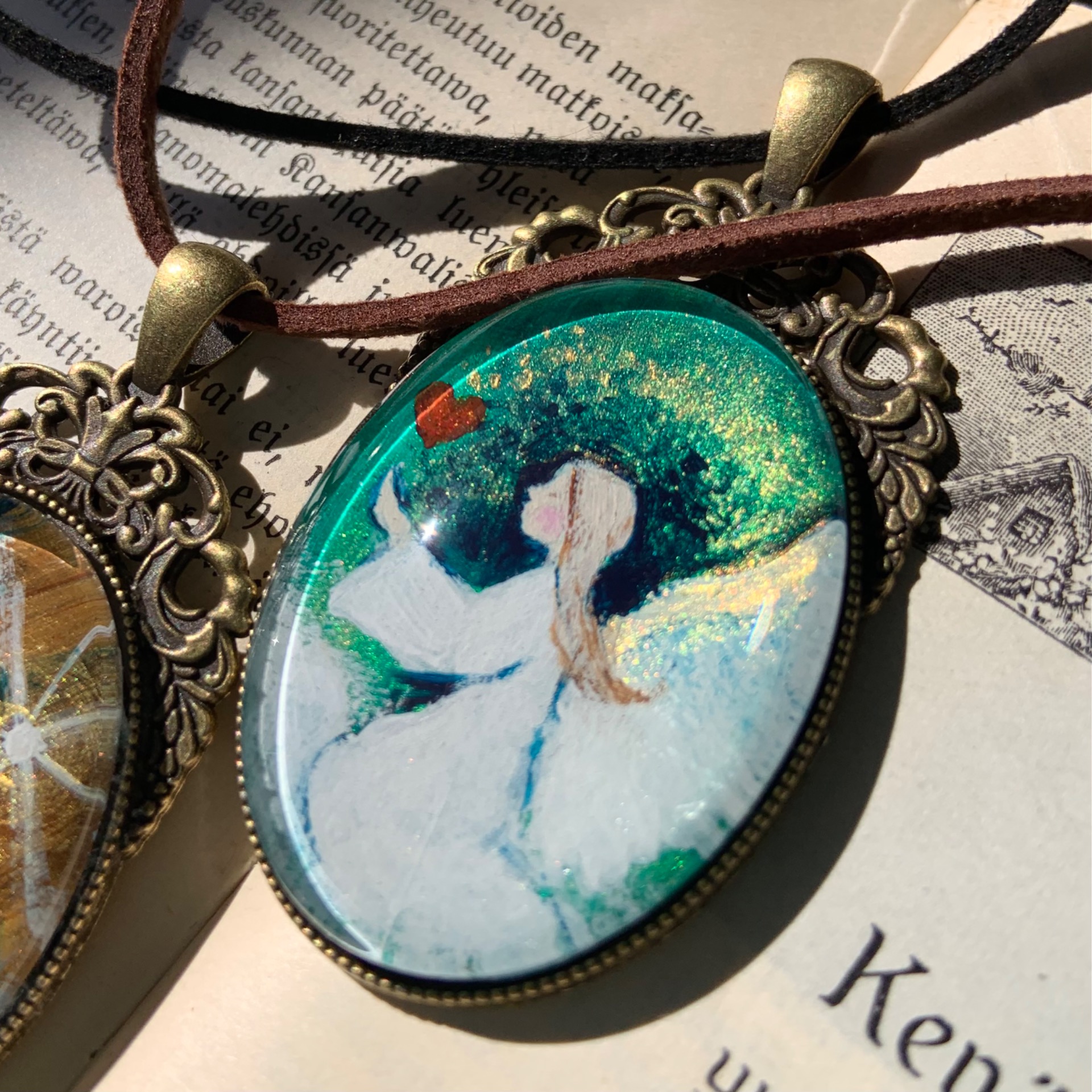 Hyvässä valossa tulee esiin sydämestä lähtevä kultainen kipinöinti ja taustan vihreä, upea loiste.