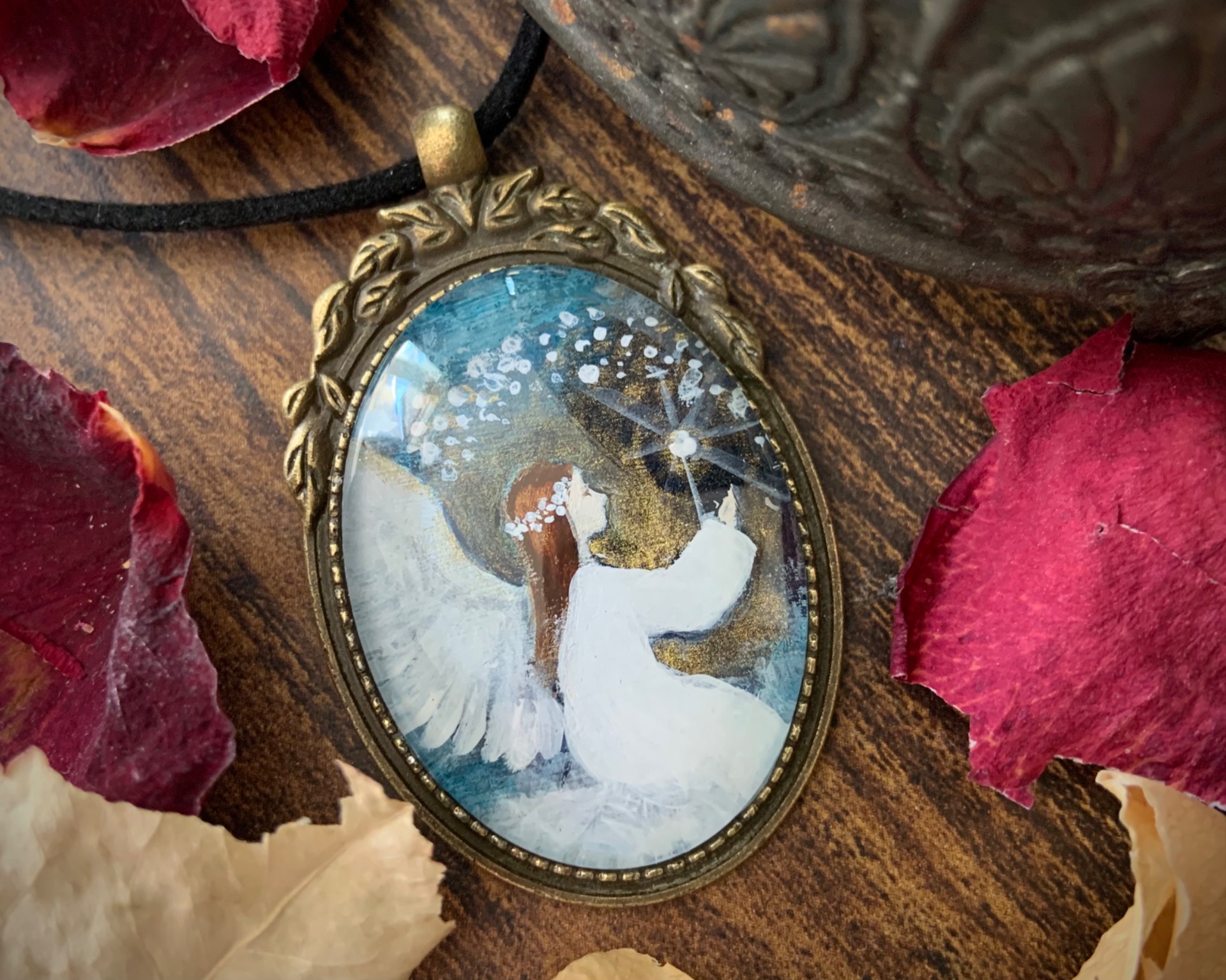Suojelusenkeli, joka kannattelee korun omistajan omaa tähteä. Suojelee lempeästi tuoden rauhaa ja hyvyyttä.