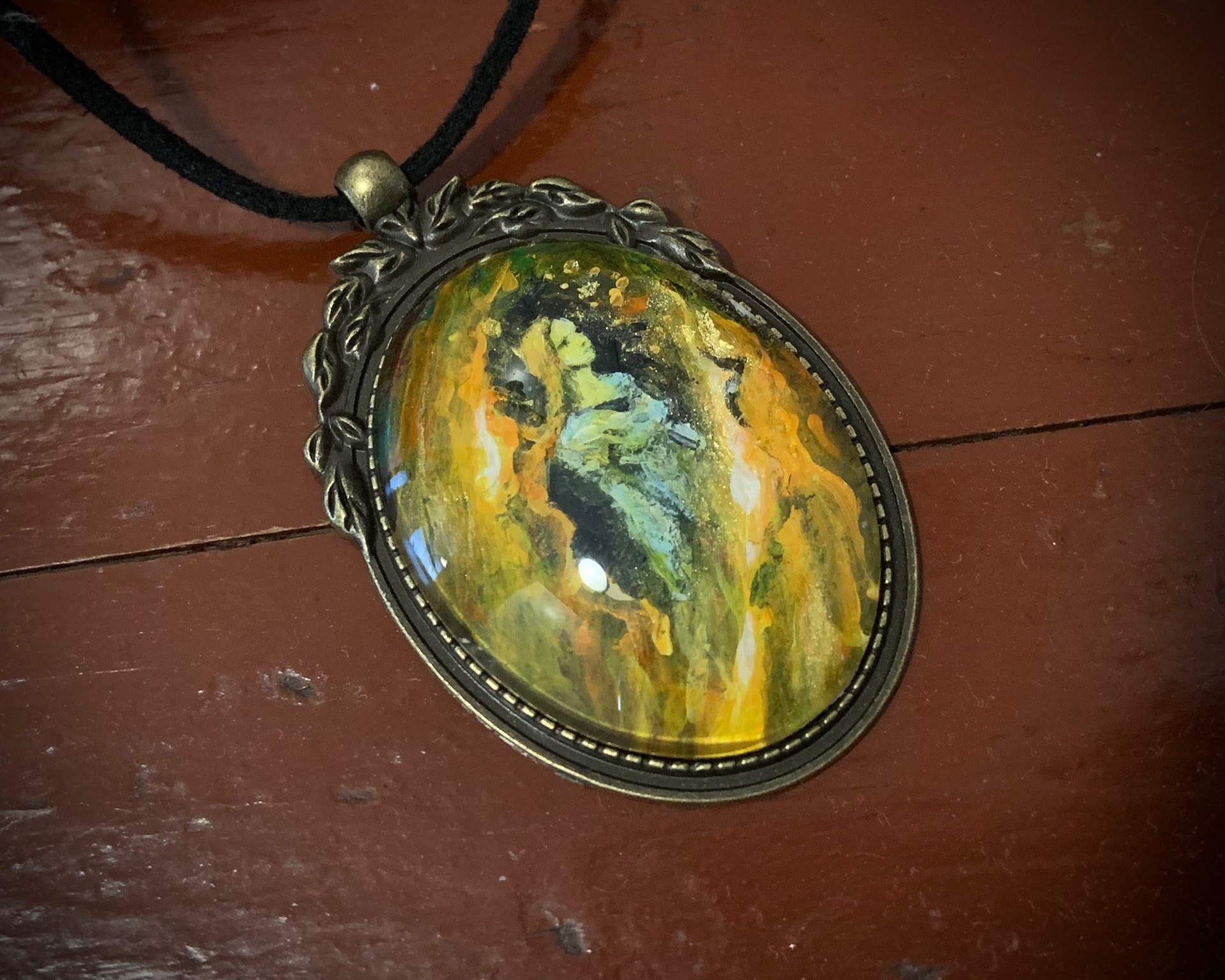 Tässä korussa on kuitenkin voima ja vahvuus, itsevarmuus. Häntä ei polta edes tuli. Ehkä hän sitten on noita?