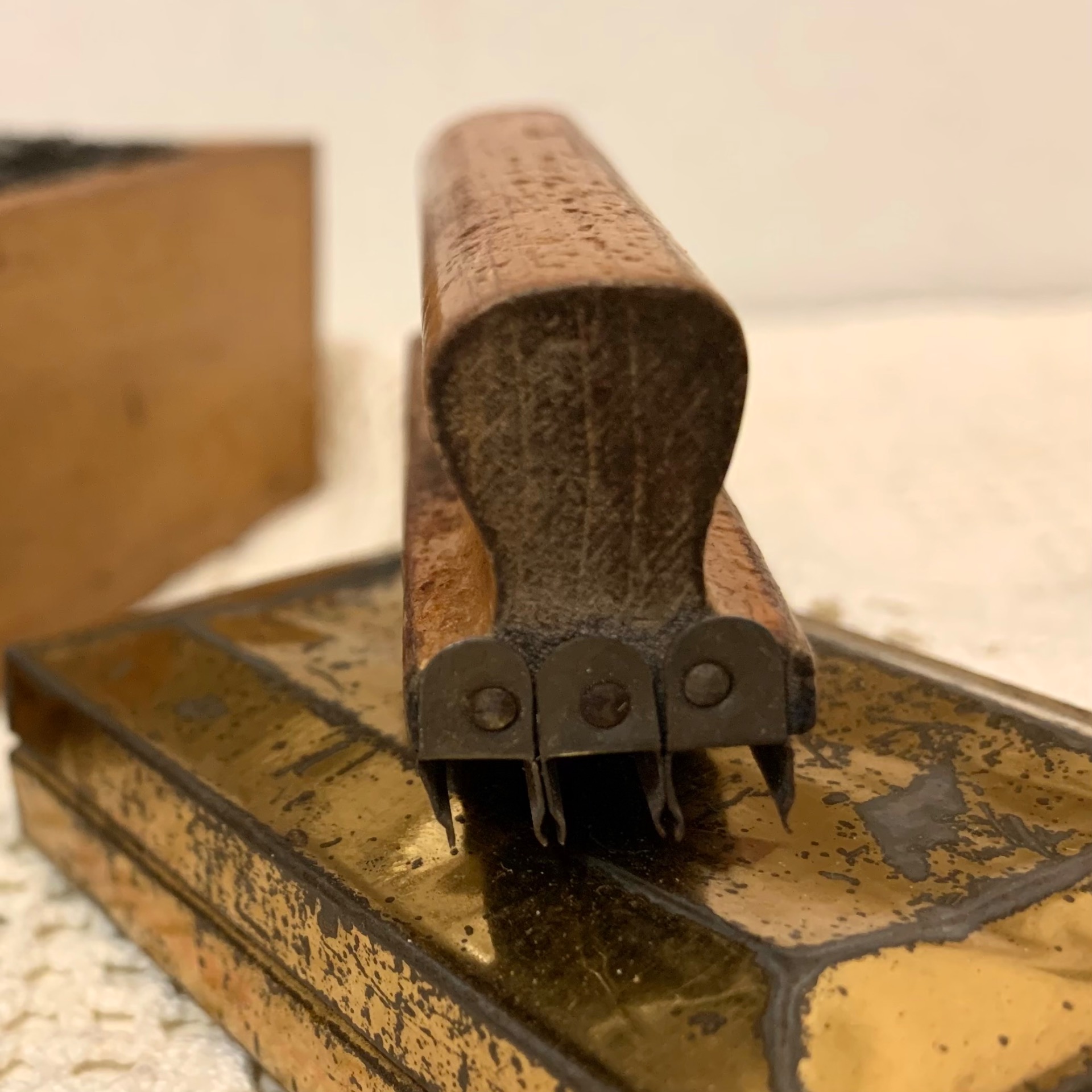 Patinaa, kulumaa, käytön jälkiä.