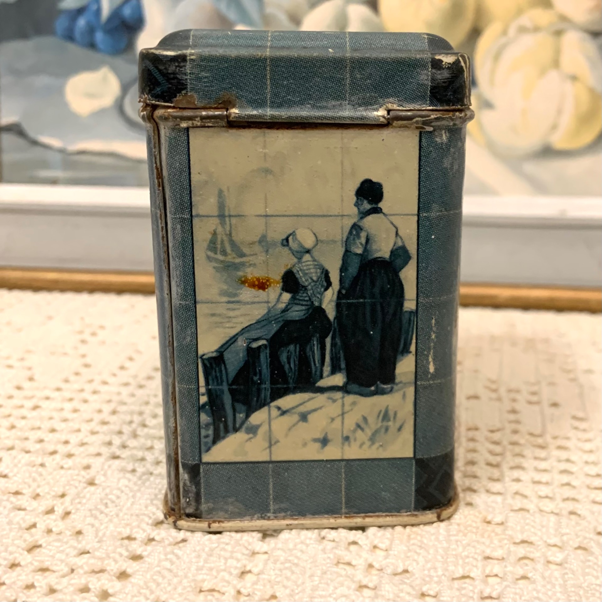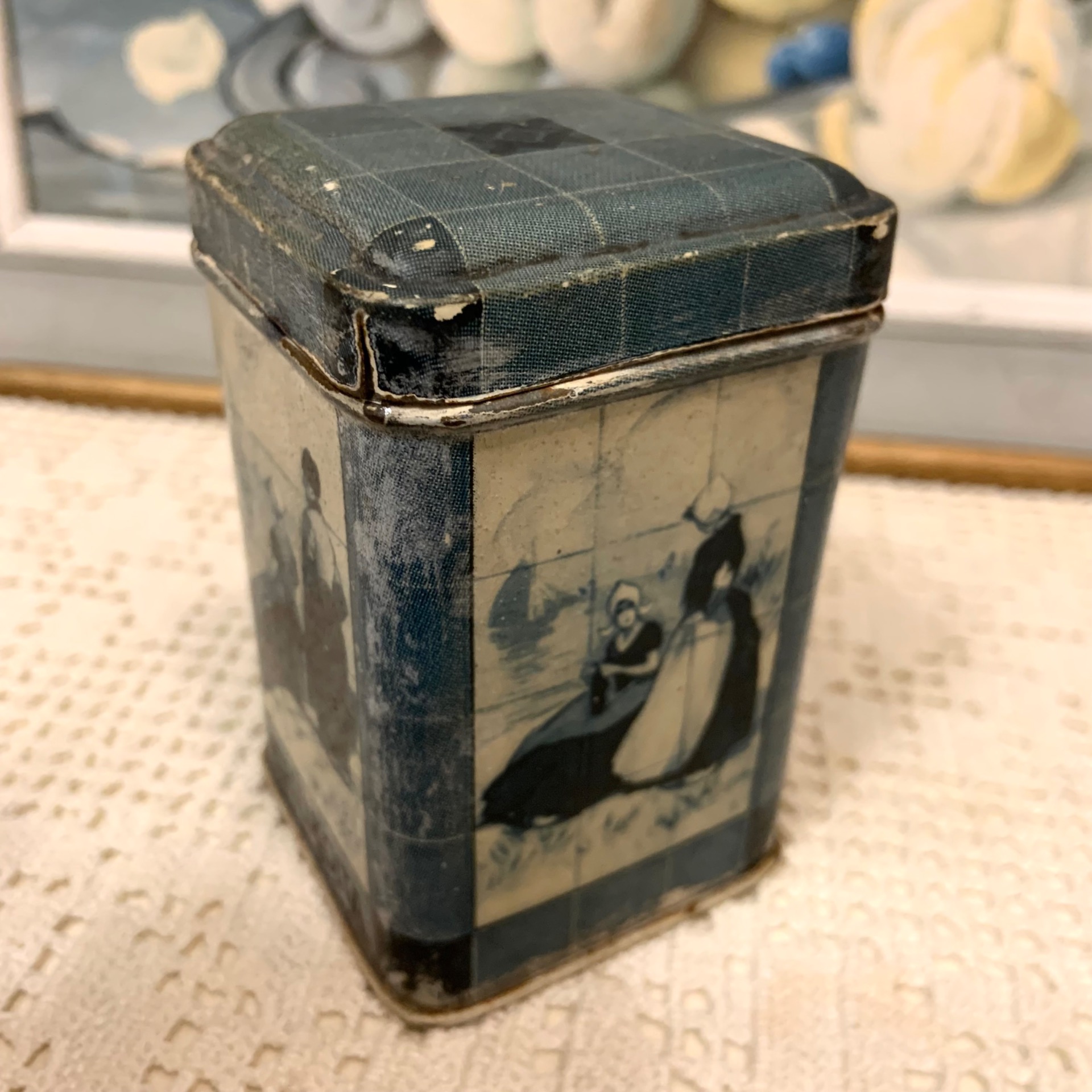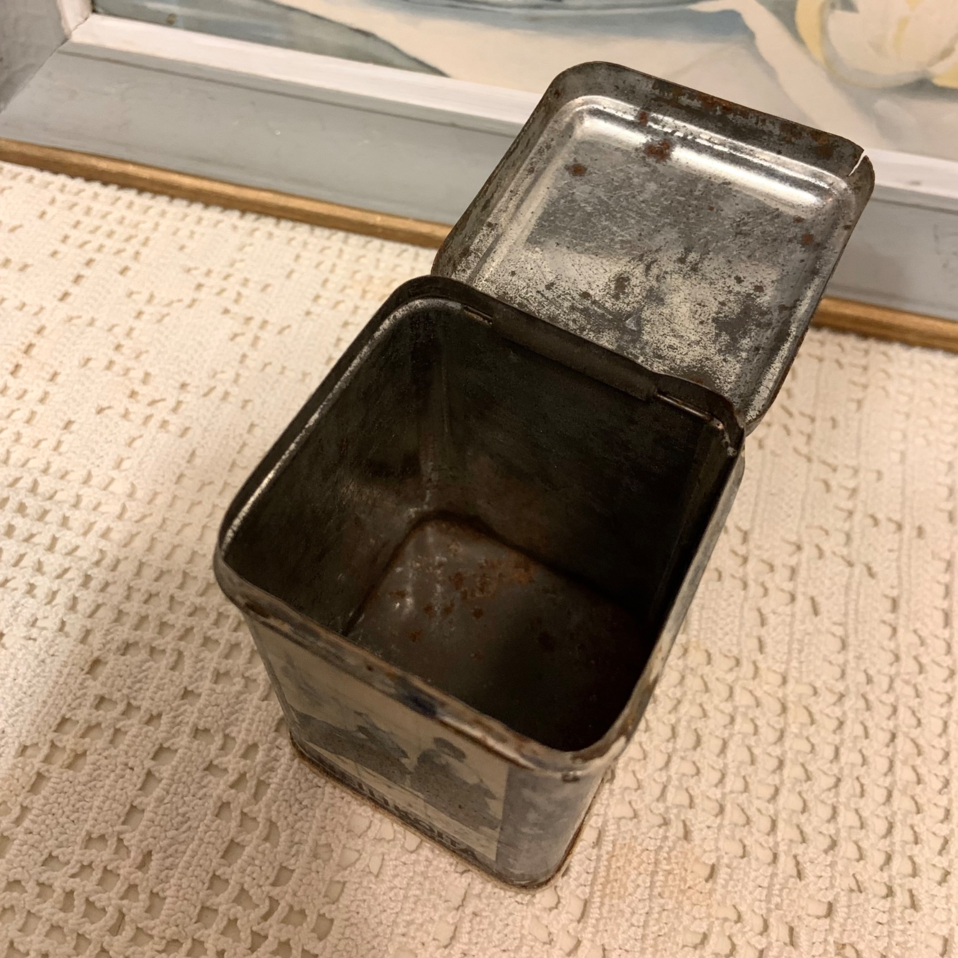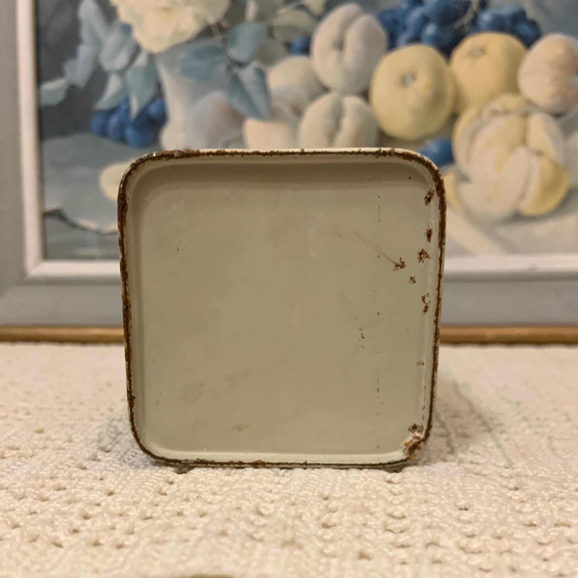 5,5 x 5,5 cm, korkeus 16 cm. Kulumaa ja käytön jälkiä. Kansi nurkastaan vaurioitunut. Sulkeutuu ja avautuu kuitenkin.