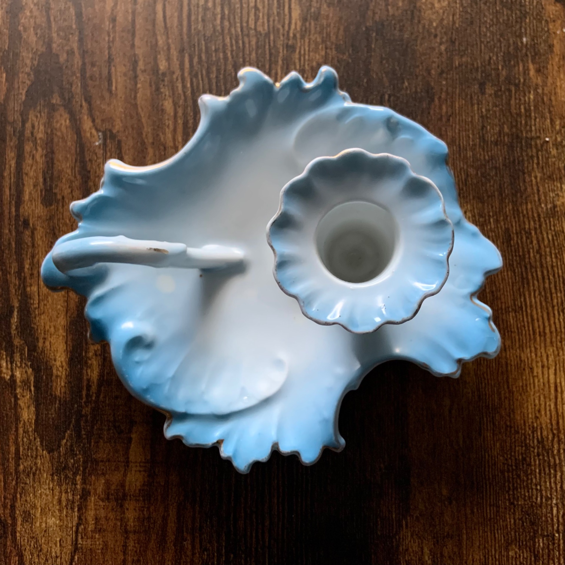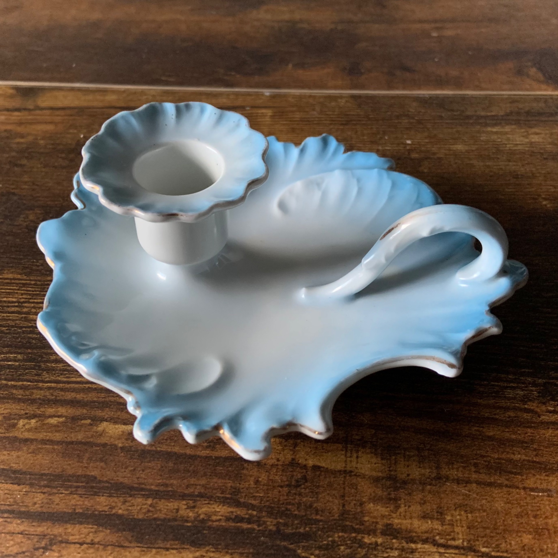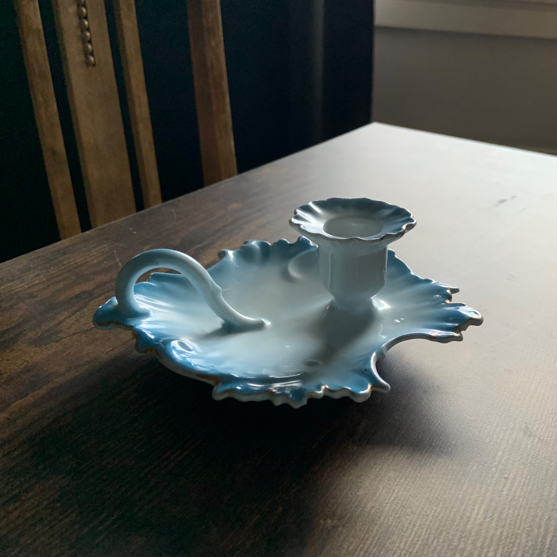Hyvin kaunis vanha posliininen yökynttilänjalka.