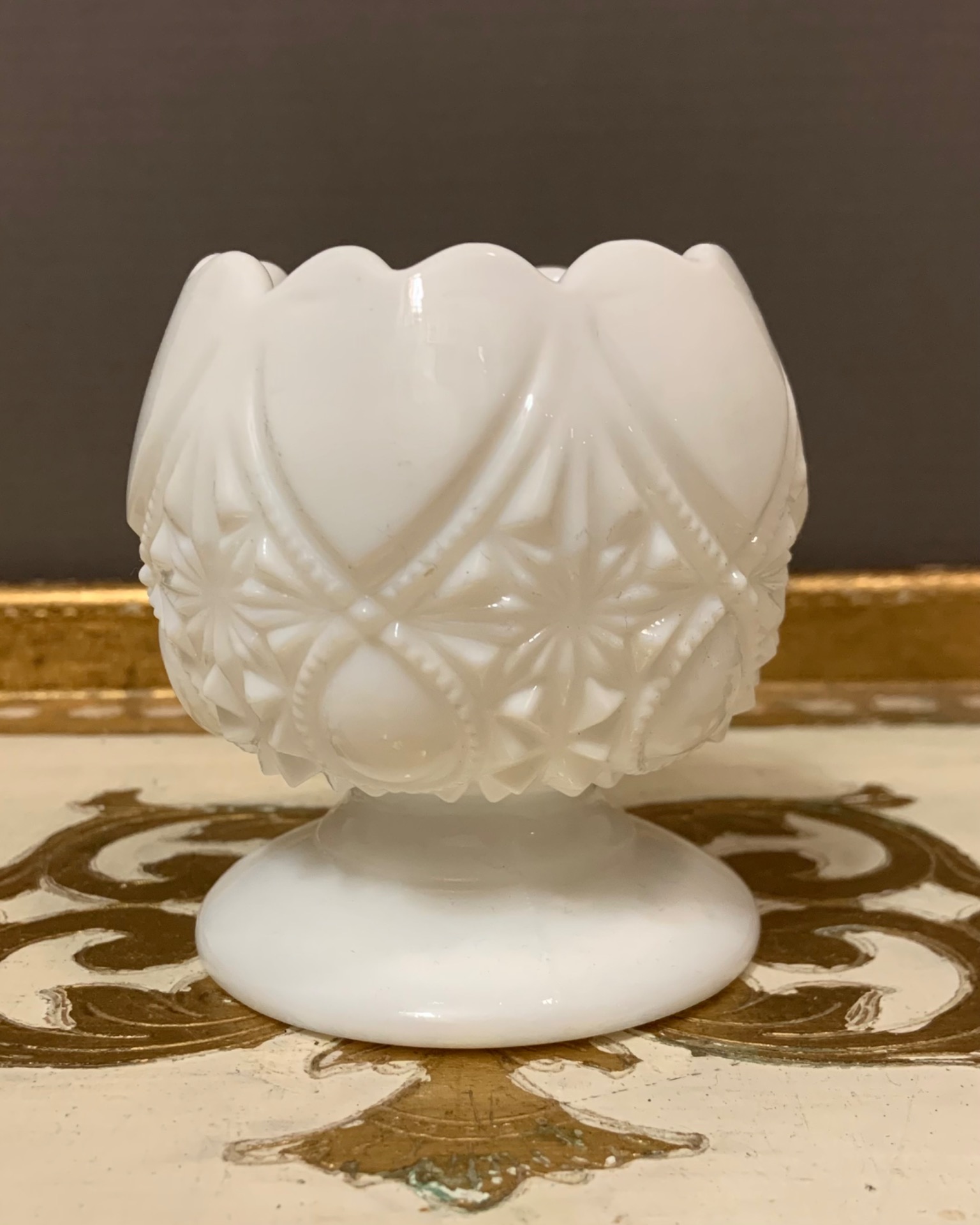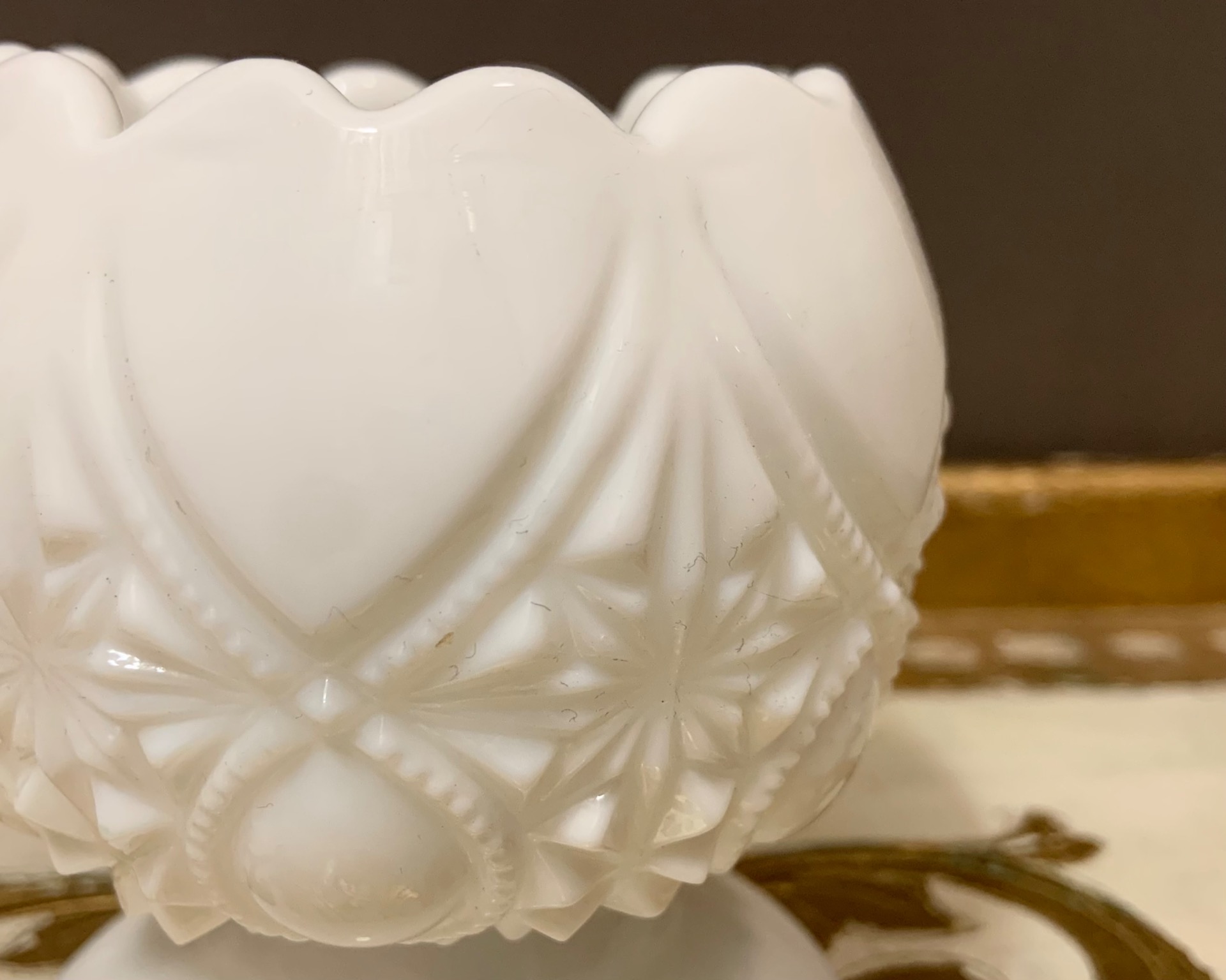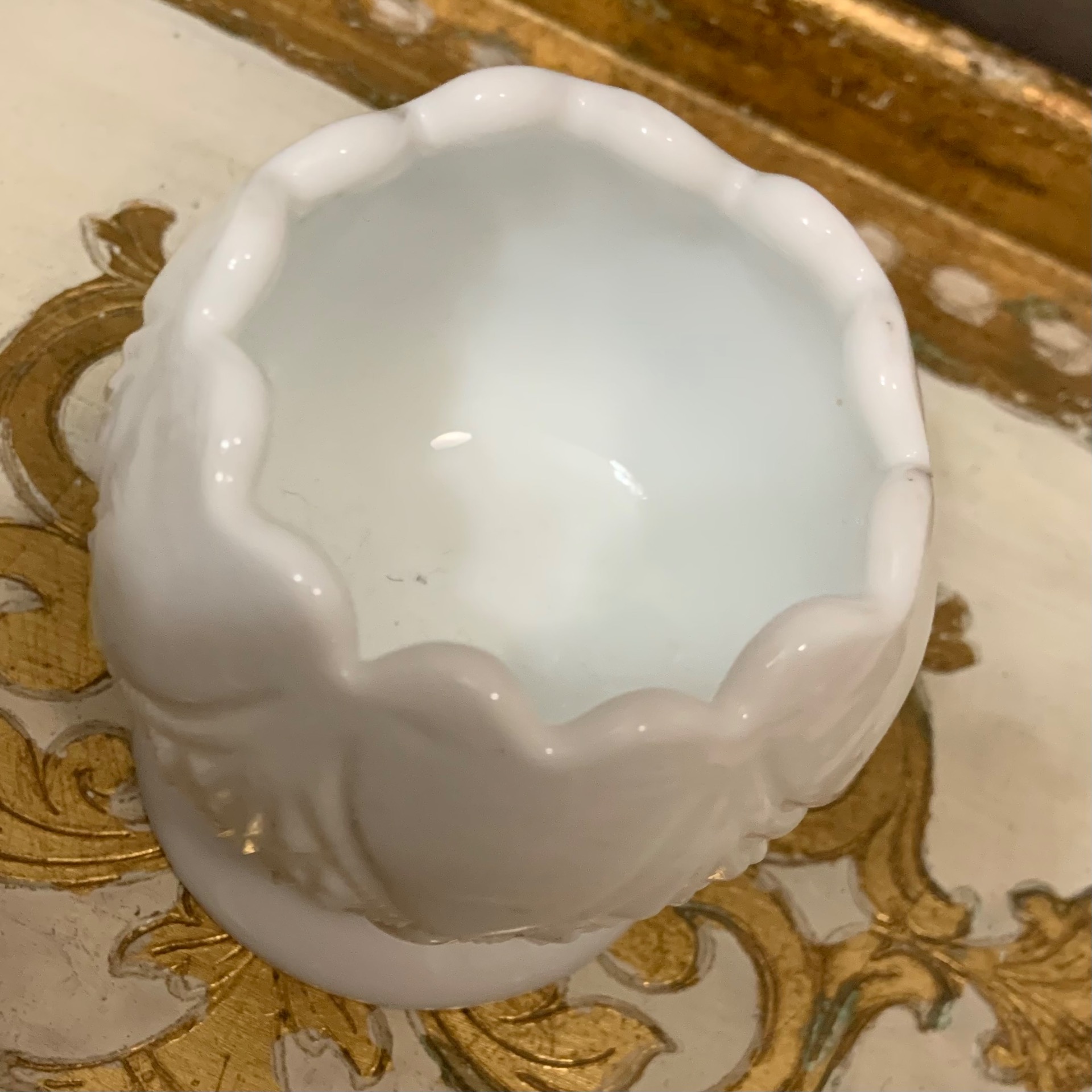 Vintage sydänkippo valkoinen maitolasi